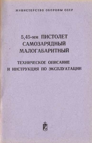 Техническое описание и инструкция по эксплуатации 5,45-мм пистолет самозарядный малогабаритный (изд. 1979), формат: djvu |