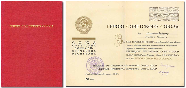 При награждении Героя Советского Союза орденом Ленина и медалью “Золотая Звезда” ему одновременно с орденом и медалью вручается грамота Президиума Верховного Совета СССР.