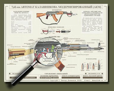 К 1959 году АК по опыту эксплуатации был модифицирован, и в 1959 году на вооружение принимается автомат АКМ – автомат Калашникова Модернизированный, отличавшийся в первую очередь цельноштампованной ствольной коробкой меньшей массы, приподнятым вверх прикладом и измененным ударно-спусковым механизмом, в конструкцию которого был введен замедлитель срабатывания курка (иногда ошибочно называемый замедлителем темпа стрельбы). Вместе с АКМ на вооружение был принят и новый штык-нож, имевший отверстие в клинке, что позволяло использовать его вместе с ножнами в качестве кусачек для резки проволоки. Еще одним усовершенствованием, появившимся в АКМ, стало введение дульного компенсатора, наворачивающегося на резьбу на дульном срезе ствола. Вместо компенсатора на ствол может быть установлен глушитель ПБС-1, требующий использования специальных патронов «УС» с дозвуковой скоростью пули. АКМ может оснащаться 40 мм подствольным гранатометом ГП-25. Прицельные приспособления АКМ получили разметку до 1000 метров вместо 800 метров на АК-47 (в любом случае, стрельба из АК/АКМ на дальность свыше 400 метров – практически пустая трата патронов).