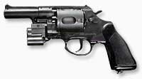 Револьвер - оружие с вращающимся барабаном, каморы которого служат помещением для патронов и патронника ствола. Жестко закрепленный в рамке ствол собственного патронника не имеет. Существенное преимущество барабанного оружия - возможность производства следующего выстрела при осечке без перезаряжания, а также сравнительная простота конструкции и надежность в обращении. Недостатки: длительность перезаряжания, большой поперечный габарит, тугой спуск.