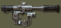 И прицел и мушка размещены на корпусе глушителя. Прицельная планка имеет гривку с прорезью для прицеливания и вырезы для удержания хомутика в установленном положении. На прицельной планке нанесена шкала с делениями от 10 до 42: на правой стороне от 10 до 40, на левой - от 15 до 42. Цифры шкалы обозначают дальности стрельбы в десятках метров. Такая шкала позволяет устанавливать прицел соответственно дальности до цели с точностью до 20 - 30 м.