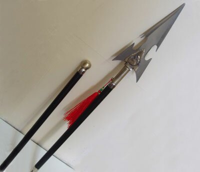 Потом переходили к поединкам между двумя воинами с использованием копий с тупыми наконечниками, окрашенными краской. Искусство воина владеть копьем достигало исключительных высот в закрытых монастырских школах древнего Китая. Для использования копья в бою монахи имели все предпосылки, так как традиционно монашеским оружием был идейно сходный с копьем посох. Монахи сумели абстрагировать главную суть посоха - длинное древко как у посоха и острый конец, способный проткнуть противника. Они лишили копье бросавшейся в глаза ассимметрии, и возникло завершенное по своей сути оружие профессионала - копье с наконечниками по обеим сторонам древка.