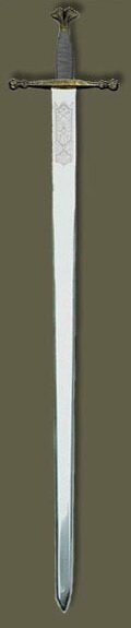 Классический рыцарский длинный меч окончательно оформился к 13 в. Средняя длина его клинка составляла 75 - 80 см, максимальная - 90 см. меч был плоский, шириной 5 см и имел долы. Гардой служила простая перекладина, дужки которой могли незначительно загибаться вверх. Рукоять, рассчитанная на одну ладонь, имела в длину 10 см. Заканчивалась она навершием - противовесом, которое очень часто использовалось как тайник для хранения какой-нибудь христианской реликвии, повышающей "святость" меча и боевые качества его владельца. Поэтому рыцари навершие в бою не использовали. Вес меча составлял 1,25-1,8 кг.